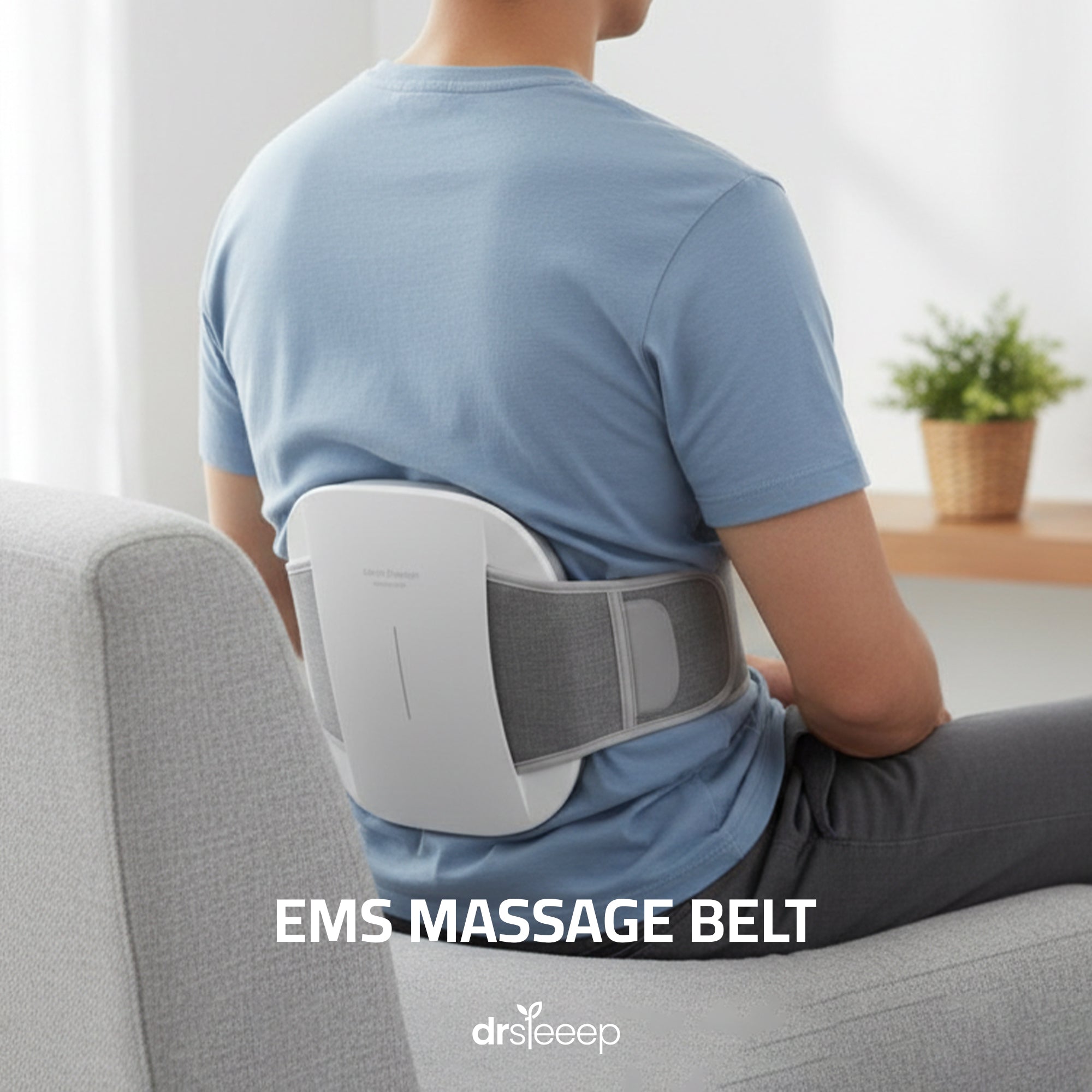 جهاز حزام تدليك للظهر والخصر من نوع "EMS Massage Belt" مصمم لتعزيز العافية وتخفيف آلام العضلات. يحتوي على وظائف تدليك بالنبضات الكهربائية (EMS) والقِطع لسخونة مدمجة.