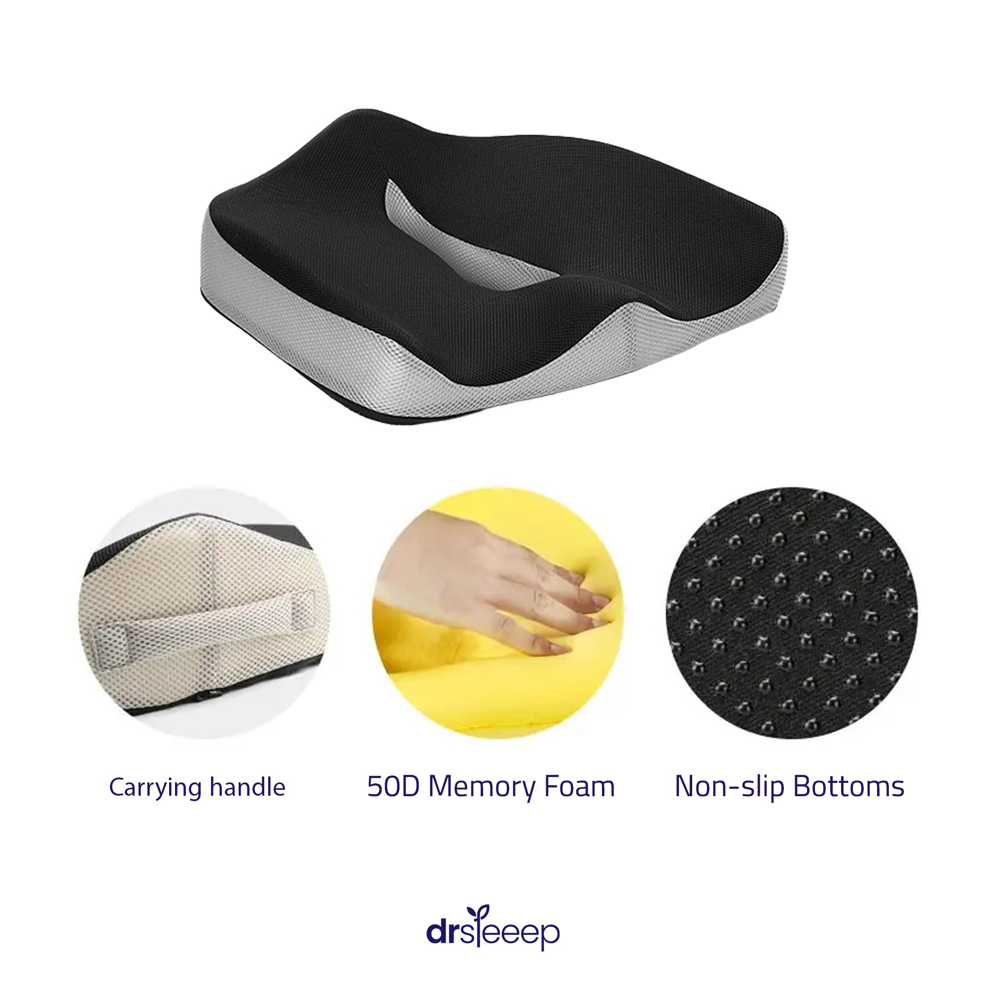 ارتقِ براحة جلوسك مع وسادة المقعد المبردة من DrSleeep، المصممة بفوم ذاكرة قابل للتهوية وقنوات تروية تساعد على إبقائك باردًا خلال ساعات الجلوس الطويلة. مثالية لمقاعد المكتب، مقاعد السيارة، أو الاستخدام المنزلي، توفر هذه الوسادة دعمًا مريحًا لتخفيف الضغط عن عظمة العصعص وأسفل الظهر.