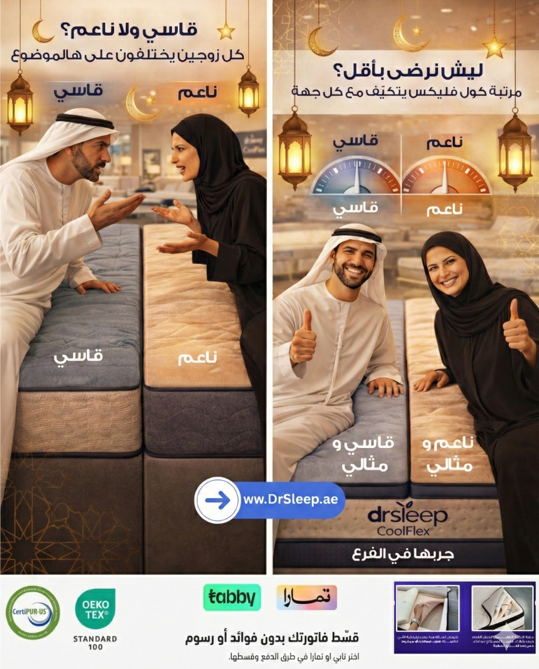 A luxurious customizable mattress designed to adapt to your sleeping style. It combines innovative Coolux foam that maintains its softness in any climate, with responsive bounce foam that adds a refreshing sense of vitality, along with a pocket spring system divided into multiple support zones. Best of all? You can adjust the firmness of each side to perfectly suit you and your partner.