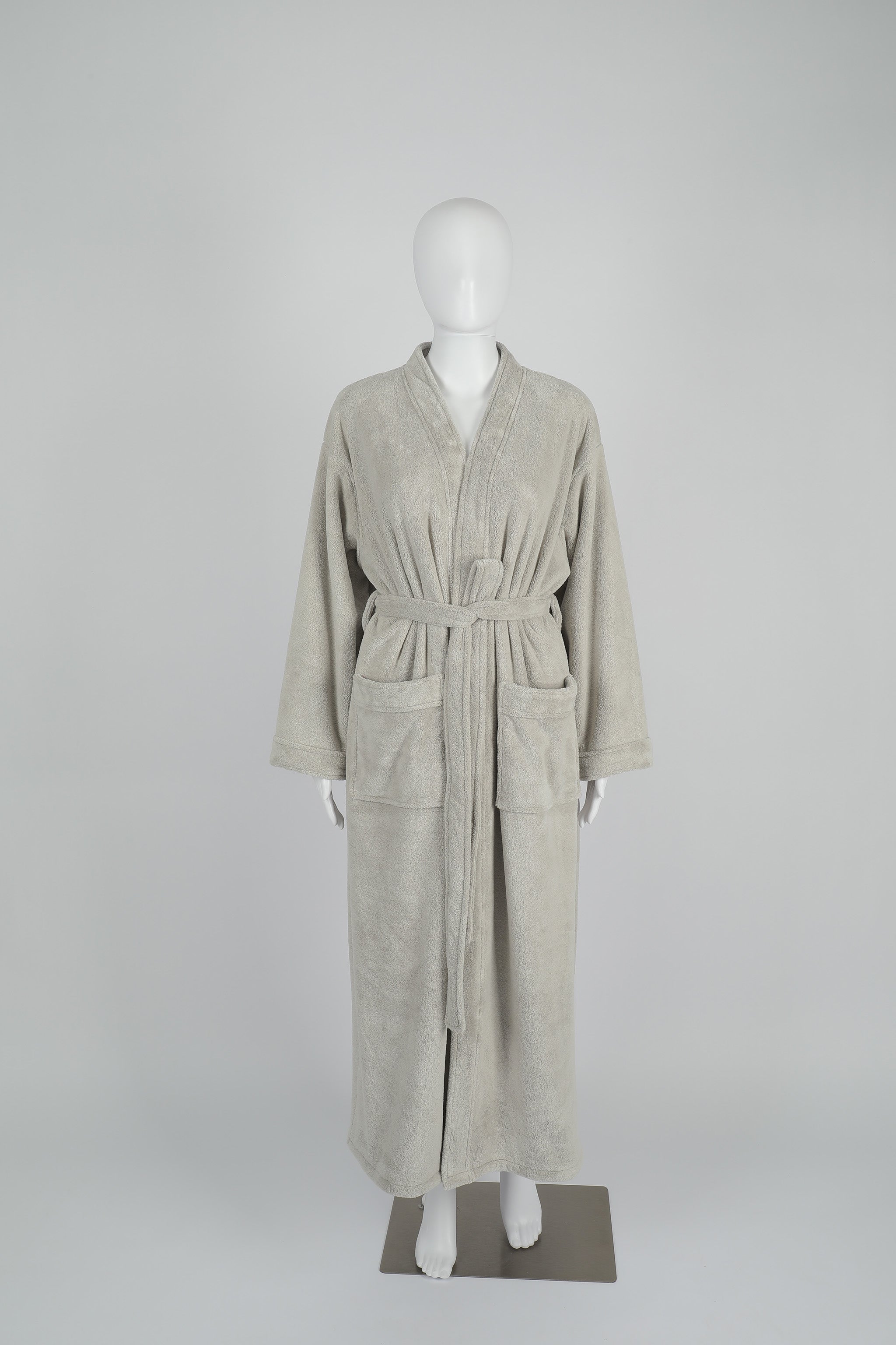 Elegant Light Grey Adult Bathrobe - High Water Absorption, Ultra-Soft, Lightweight, and Made from Finest Coral Fleece - Modern Design with Wide Sleeves and Long Length for Maximum Comfort