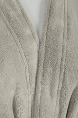 Elevate your lounging experience with this elegant light grey bathrobe that combines quality, comfort, and modern design.
